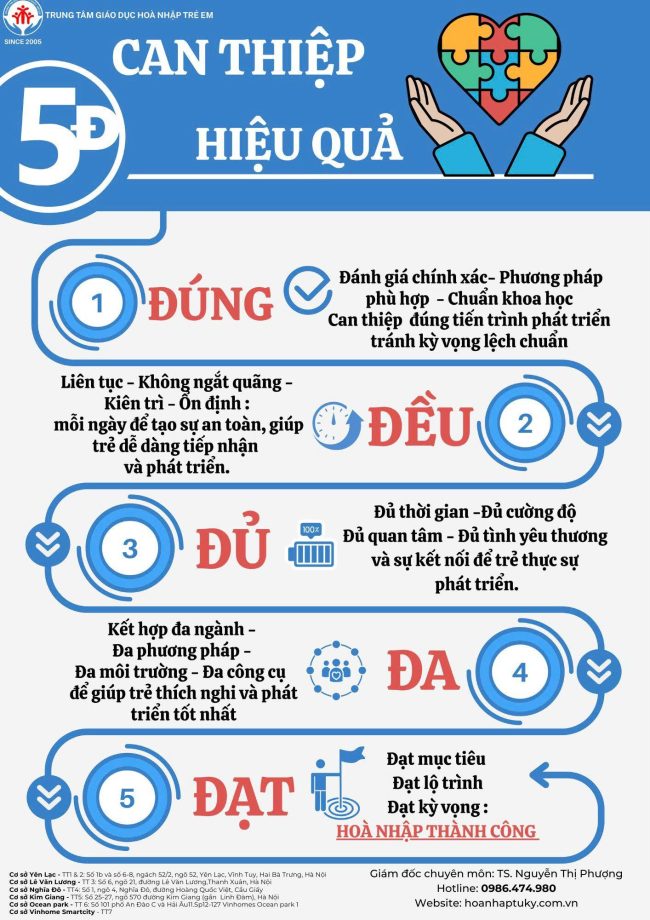 Trung tâm thiết kế chương trình can thiệp và kết hợp phương pháp hiện đại đồng thời áp dụng theo quy trình quốc tế điều chỉnh phương pháp phù hợp với từng giai đoạn phát triển của trẻ giúp trẻ có nhu cầu đặc biệt can thiệp hiệu quả.