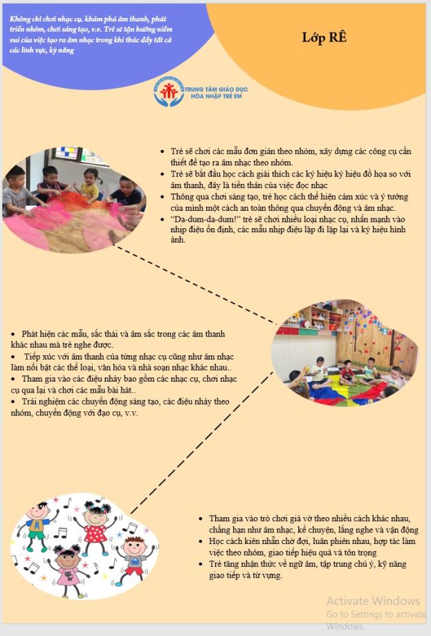• Trẻ sẽ chơi các mẫu đơn giản theo nhóm, xây dựng các công cụ cần thiết để tạo ra âm nhạc theo nhóm.
