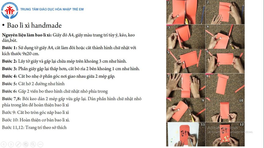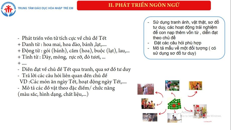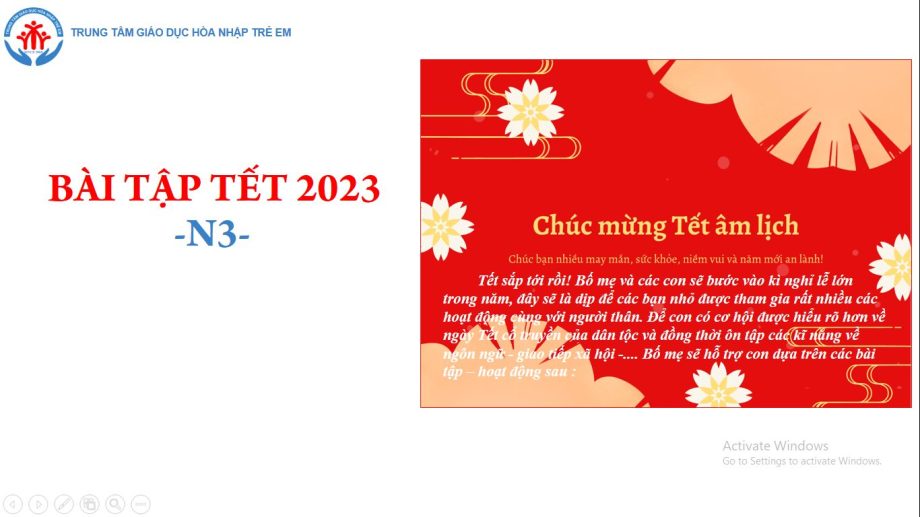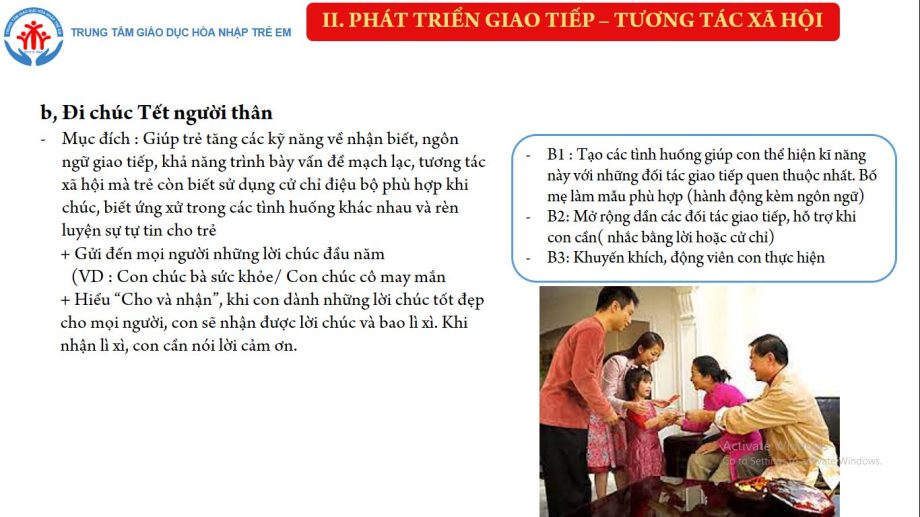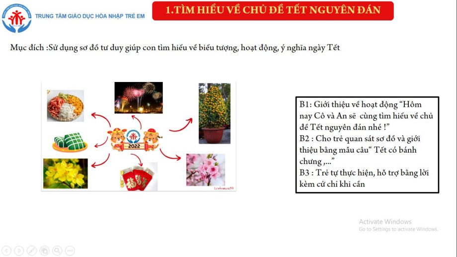 Tết sắp tới rồi! Bố mẹ và các con sẽ bước vào kì nghỉ lễ lớn trong năm, đây sẽ là dịp để các bạn nhỏ được tham gia rất nhiều các hoạt động cùng với người thân. Để con có cơ hội được hiểu rõ hơn về ngày Tết cổ truyền của dân tộc và đồng thời ôn tập các kĩ năng về ngôn ngữ – giao tiếp xã hội -…. Bố mẹ sẽ hỗ trợ con dựa trên các bài tập – hoạt động sau :