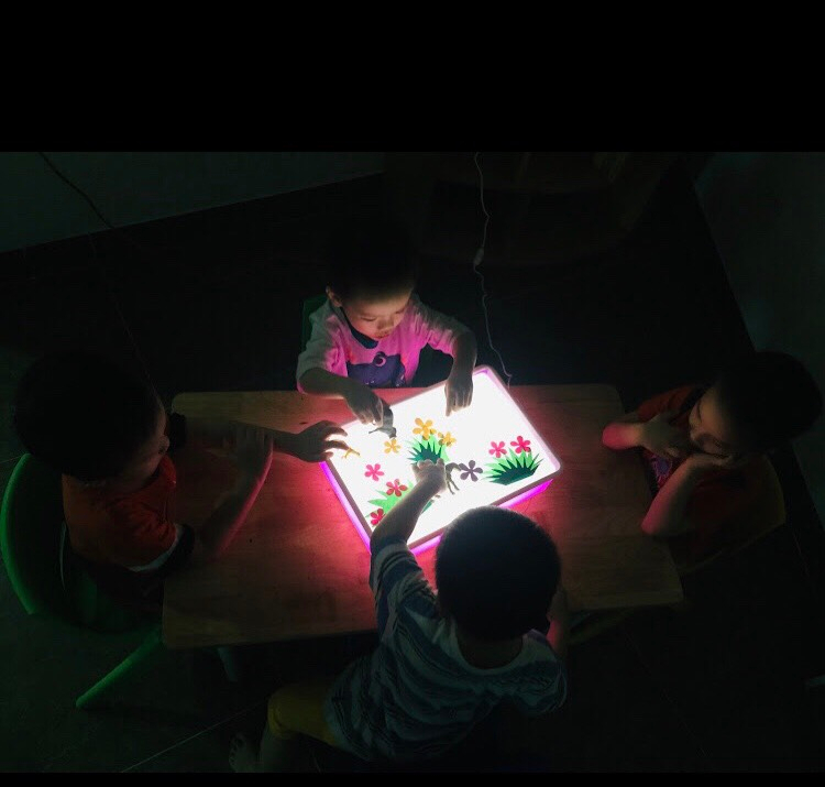 Bàn ánh sáng là một học cụ trong giáo dục sớm theo phương pháp tiếp cận Reggio Emilia. Đây là một công cụ giúp kích thích trí tưởng tượng, tăng trí thông minh cho trẻ. Tại Trung tâm các con đã được tiếp cận học cụ này qua các giờ khám phá và thực sự bạn nào cũng mê mẩn vì khả năng ứng dụng tuyệt vời mà nó mang lại.