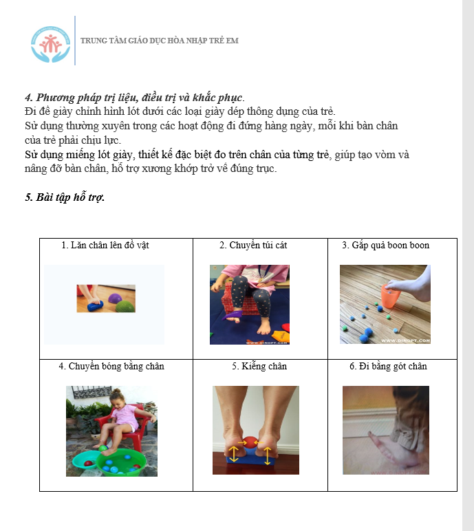 Góc phụ huynh BÀN CHÂN BẸT (PHẦN II) Posted on 18 Tháng 3, 2023 by admin trong phần I chúng ta đã được tìm hiểu về nguyên nhân – cách nhận biết – bất lợi của chứng bàn chân bẹt. Phần II sẽ là phương pháp trị liệu và một số bài tập khắc phục