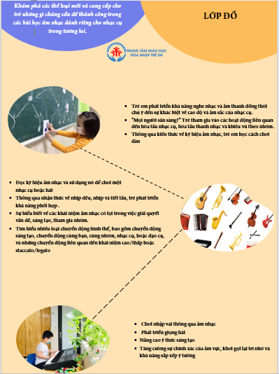 • Trẻ em phát triển khả năng nghe nhạc và âm thanh đồng thời chú ý đến sự khác biệt về cao độ và âm sắc của nhạc cụ.