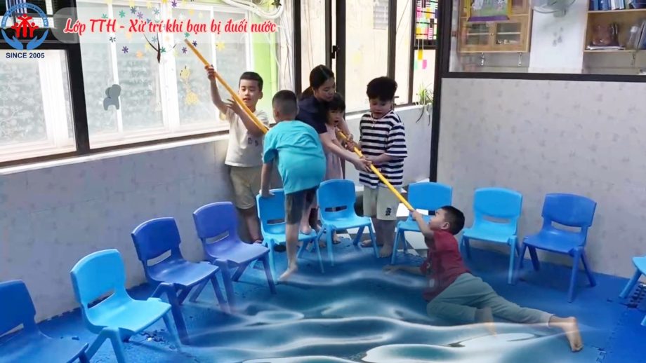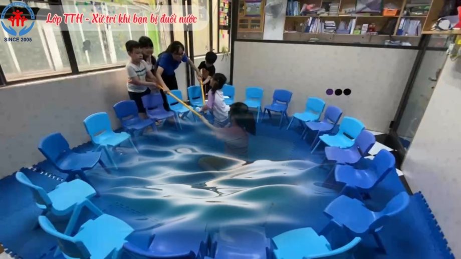 Mùa hè đến cùng với thời tiết nắng nóng kéo dài là thời điểm số vụ tai nạn đuối nước ở trẻ em gia tăng nhiều nhất trong năm. Vì vậy, trong chương trình kỹ năng sống tháng này, các bạn học sinh nhóm tiền tiểu học đã được nhóm trị liệu viên của Trung tâm tập huấn kỹ năng xử trí khi phát hiện người bị đuối nước qua các biện pháp như hô hoán, dùng cây sào, phao, dây,… để người bị đuối nước bám và kéo vào bờ; không nhảy xuống nước cứu người khi không biết bơi và không có kỹ năng cứu đuối nước; trang bị cho trẻ những kiến thức, kỹ năng cần thiết để có một mùa hè vui vẻ, an toàn với các trải nghiệm đa dạng, thú vị.