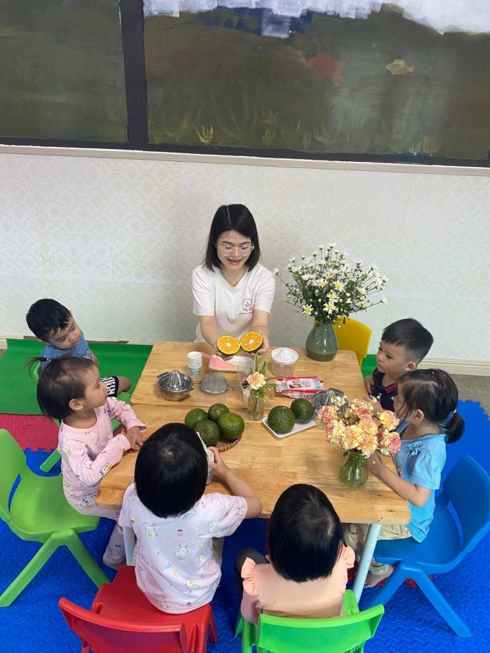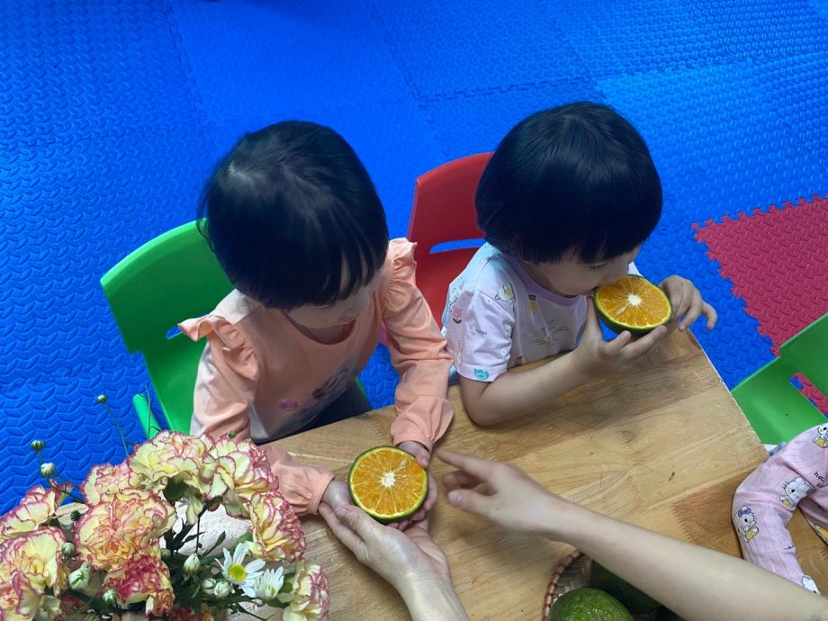 Ví dụ để dạy trẻ về khái niệm “quả cam” thì trẻ được học như thế nào qua phương pháp đa giác quan?