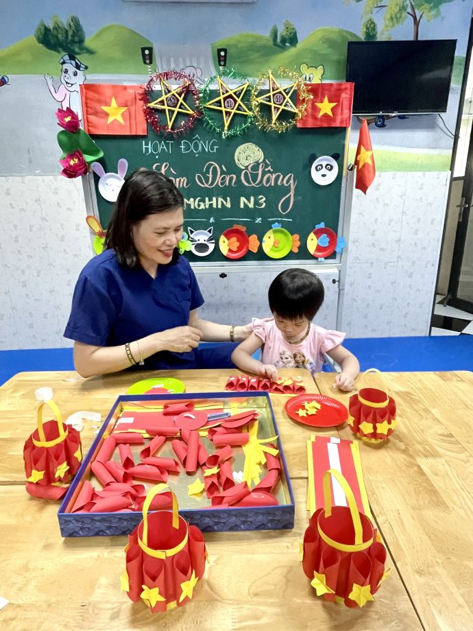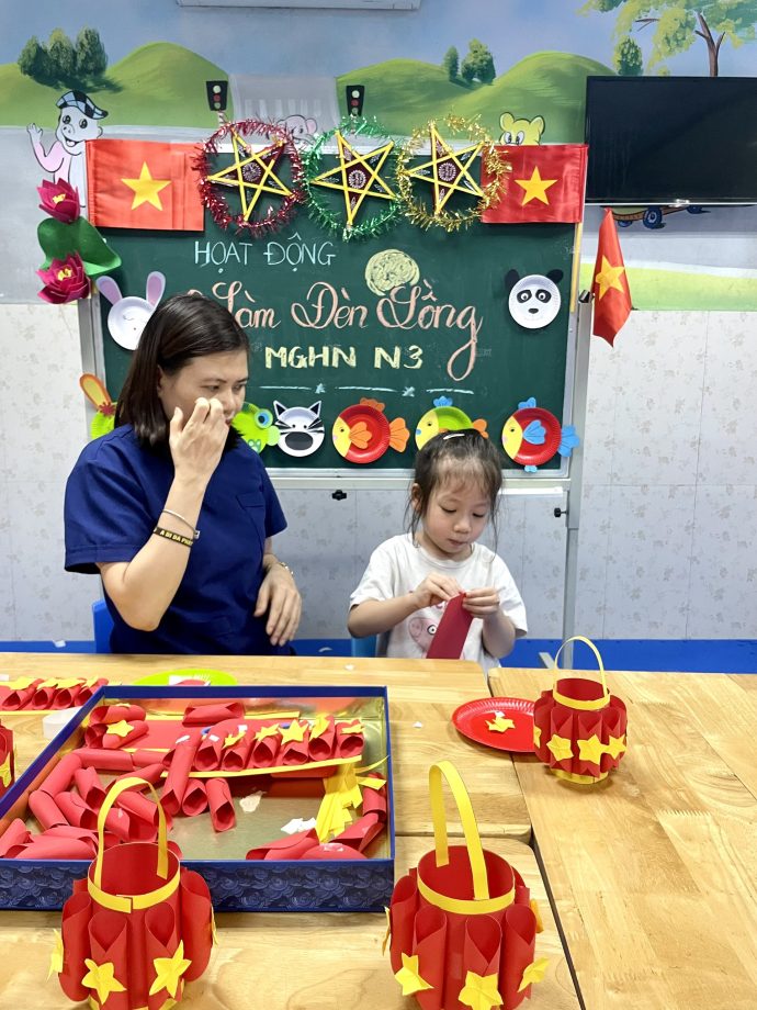 Trung thu không chỉ là lễ hội truyền thống đầy màu sắc, mà còn là cơ hội để trẻ em, đặc biệt là trẻ em hòa nhập được trải nghiệm, phát triển toàn diện về kỹ năng và nhận thức. Hoạt động làm đèn lồng không chỉ mang lại niềm vui mà còn góp phần thúc đẩy sự phát triển ngôn ngữ, nhận thức và khả năng tương tác xã hội cho trẻ.