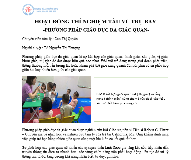 Chưa được phân loại HOẠT ĐỘNG THÍ NGHIỆM TÀU VŨ TRỤ BAY – PHƯƠNG PHÁP GIÁO DỤC ĐA GIÁC QUAN Posted on 12 Tháng mười một, 2022 by admin