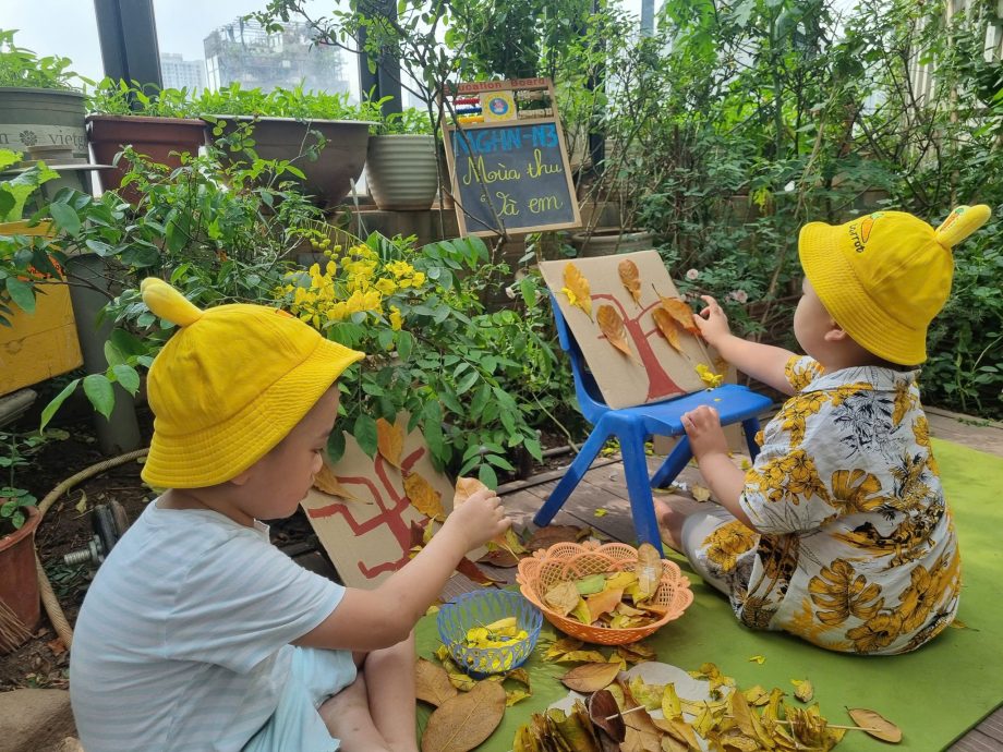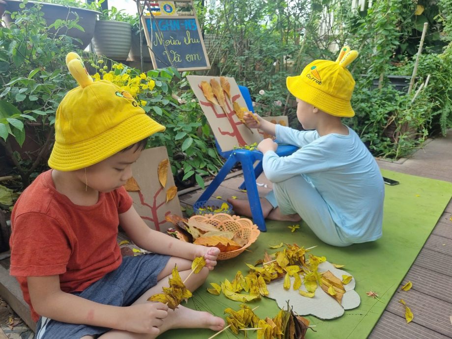 Mùa thu về nhẹ nhàng, lãng mạn, thời tiết mát mẻ, đường phố phủ đầy lá vàng và thoang thoảng đâu đây mùi thơm hoa sữa, chúng ta lại nhớ đến mùa thu của Hà Nội. Và hôm nay, cô trò Trung tâm Giáo dục Hòa nhập Trẻ em (Lớp mẫu giáo HN – N3C) tổ chức hoạt động trải nghiệm tạo nên “bức tranh mùa thu đơn giản và những xiên thịt nướng” từ nguyên liệu dễ tìm như lá cây, bìa cattong, bút màu lông, que xiên…
