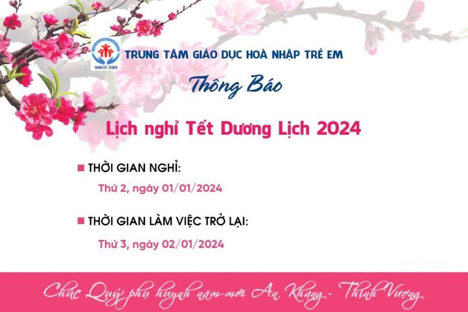 TRUNG TÂM XIN THÔNG BÁO LỊCH NGHỈ TẾT DƯƠNG LỊCH 2024