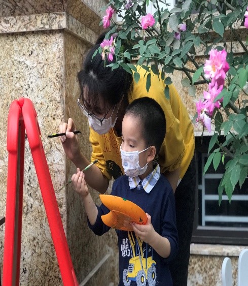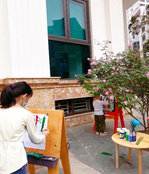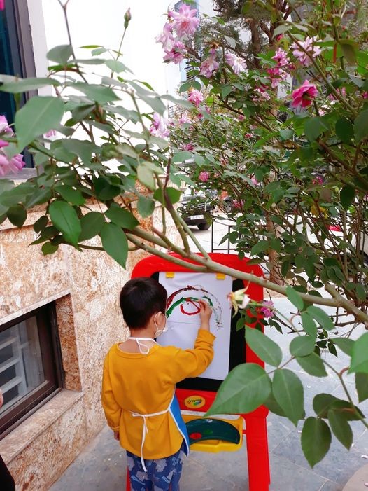 Bố mẹ cùng ngắm một số hình ảnh thích thú đến chăm chú của các con khi được Vẽ dưới thềm hoa hồng của trung tâm nhé ạ