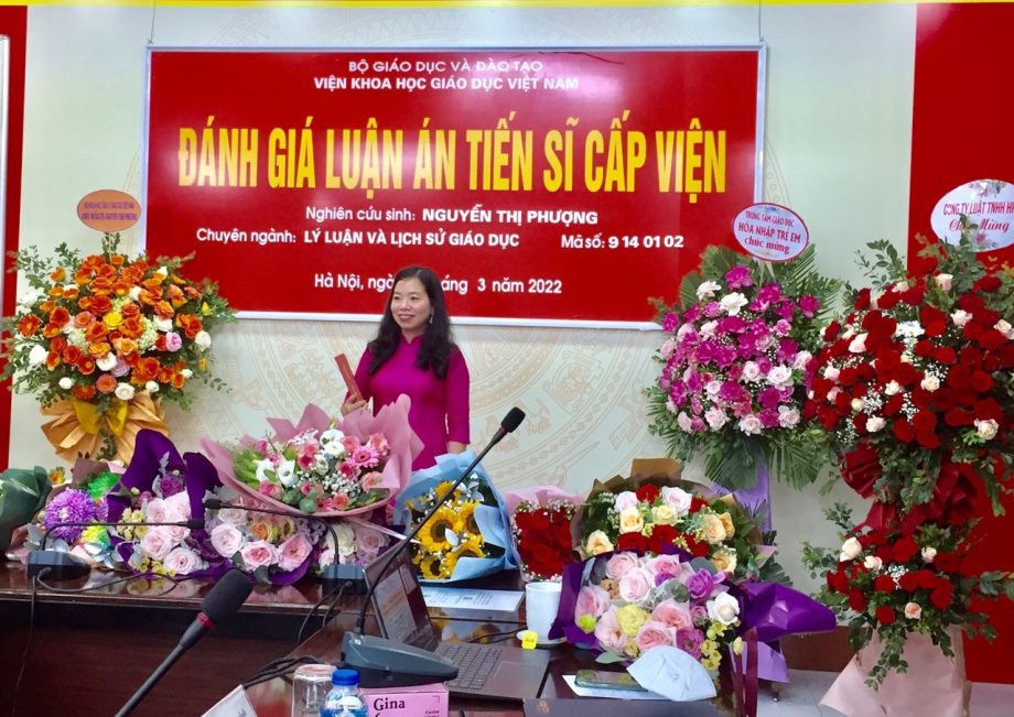 Từ năm 2014 đến 2022, Giám đốc đã dành nhiều công sức, công tác/ đi đến nhiều nơi trong nước và nước ngoài để nghiên cứu, thu thập tư liệu, kiểm chứng khoa học cho đề tài Luận án Tiến sĩ: “Tổ chức trò chơi để phát triển Ngôn Ngữ cho trẻ rối loạn phổ tự kỷ 5-6 tuổi ở trường mầm non” của mình, nhằm đưa ra hướng đi mới cho bộ phận trẻ đặc biệt. Và thật xứng đáng khi vào tháng 3/2022, tại vòng bảo vệ Luận án Tiến sĩ cấp Viện của Viện Khoa học Giáo dục Việt Nam, khi 7/7 số phiếu tuyệt đối của các thành viên trong Hội đồng đã nhất trí thông qua cùng những lời khen ngợi, đánh giá Luận án xuất sắc và tuyên bố hàm Tiến Sĩ cho cô Nguyễn Thị Phượng.